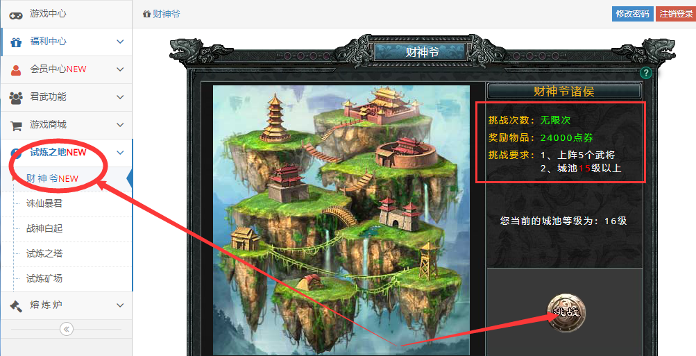 1、每日千重楼可获得点券(每5层1000点券)2、无限挑战“试炼之地”的“财神爷”可以获得大量点券(根据当前城池等级不同,每小时收益10万-30万点券)